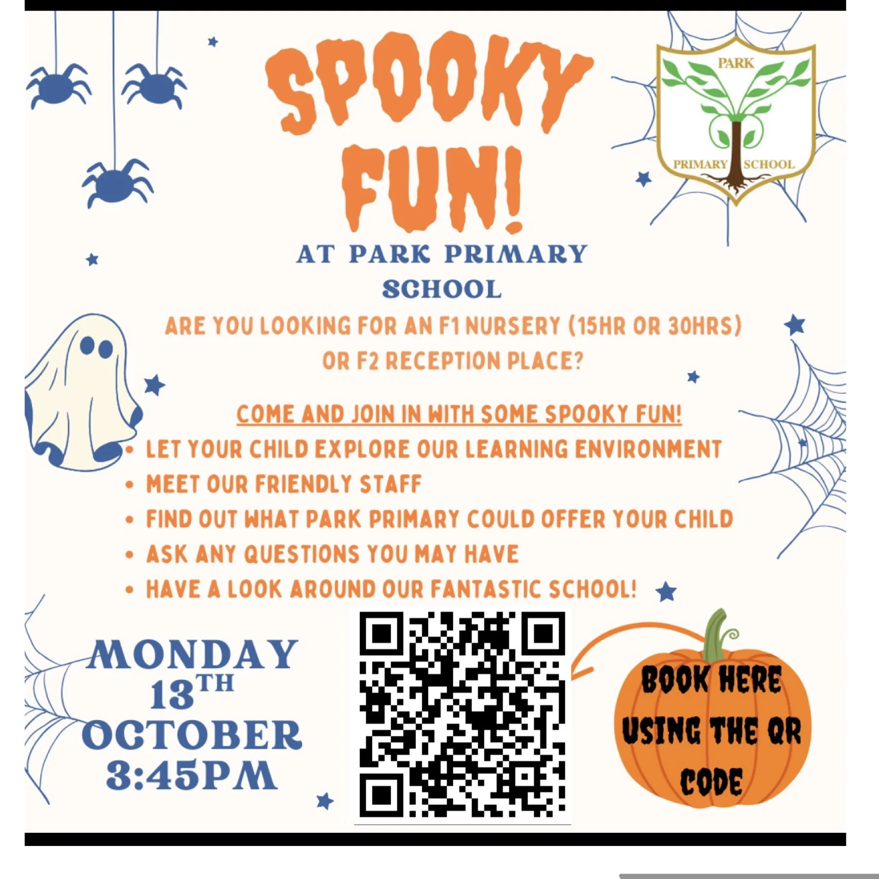 Apply for a School Place at Park Primary If you would like to attend our F1 Nursery Open Evening at 3:45pm on Monday 13th October 2025, please complete this BOOKING FORM. Foundation 2 (Reception) Foundation 1 (Nursery) In Year Transfers Register your interest herePlease take a moment to enjoy a virtual tour of our school