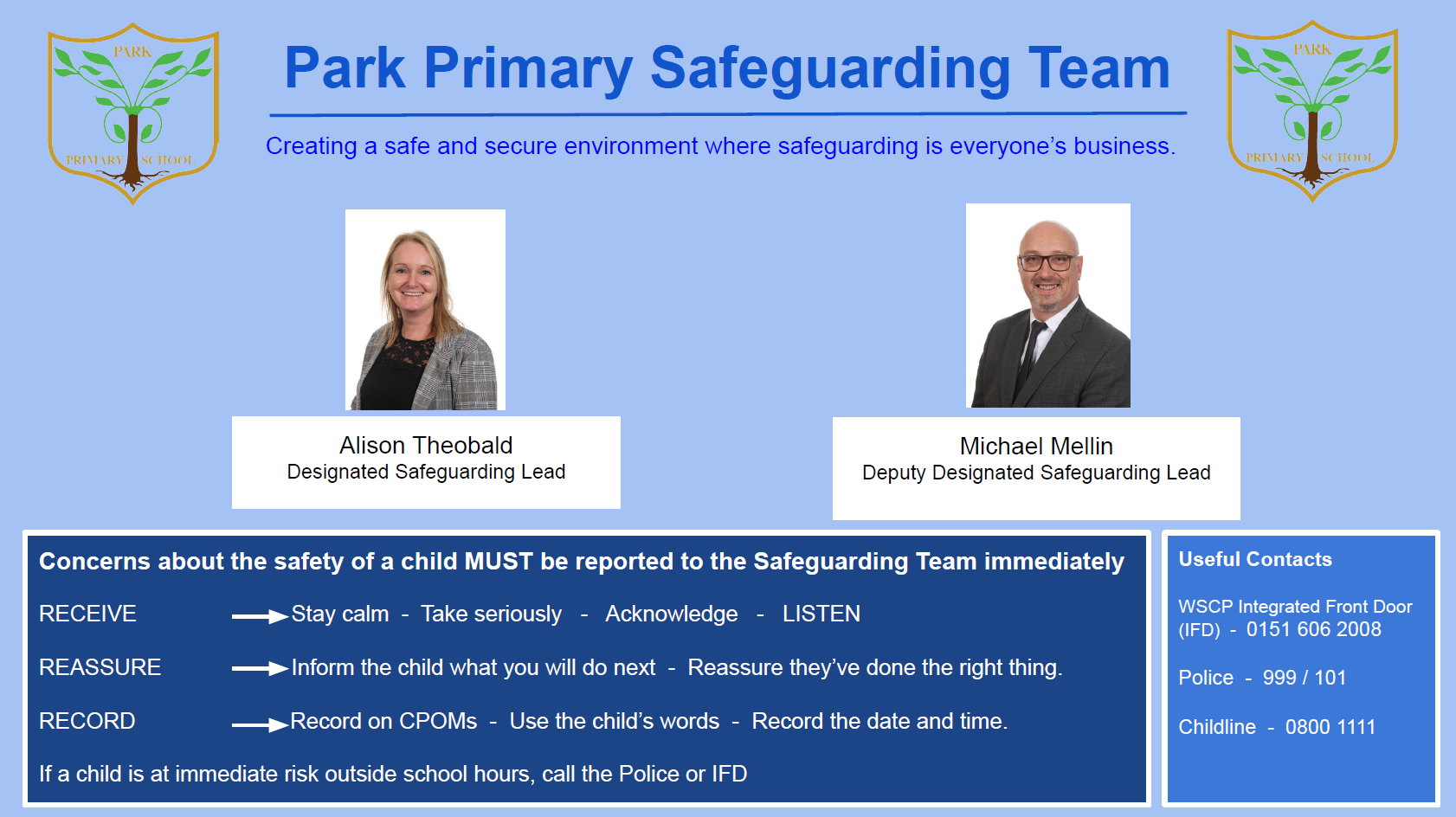 Park Primary School is committed to safeguarding and promoting the welfare of children and expects all staff and volunteers to share this commitment. Everyone has a responsibility to ensure that children at Park Primary are safe.